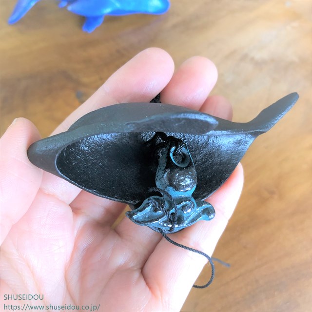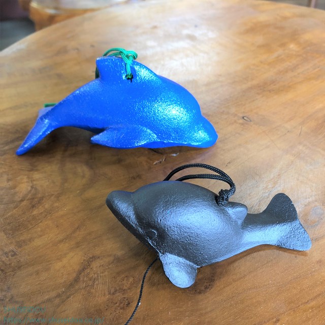 おでこのかわいい黒いミニイルカです。9×4.5×高さ3.5cmイルカの風鈴には他にも、3頭連なったイルカや青いイルカがあります。くじらやオットセイもあります。海外の方へのお土産にもいかがでしょうか。ほかの生き物をモチーフとした風鈴はこちらです。風鈴・動物・昆虫